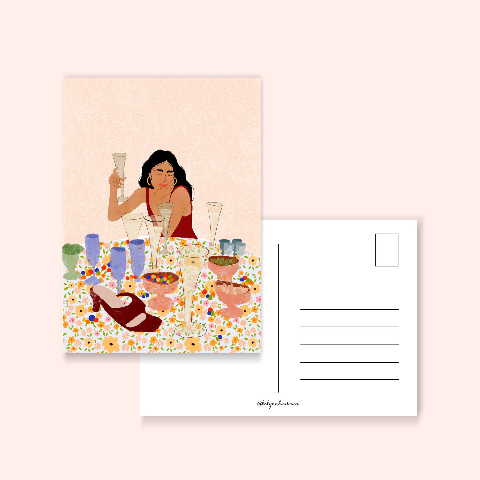 Een vrolijke, handgetekende ansichtkaart die perfect is om te versturen, in te lijsten of cadeau te geven.