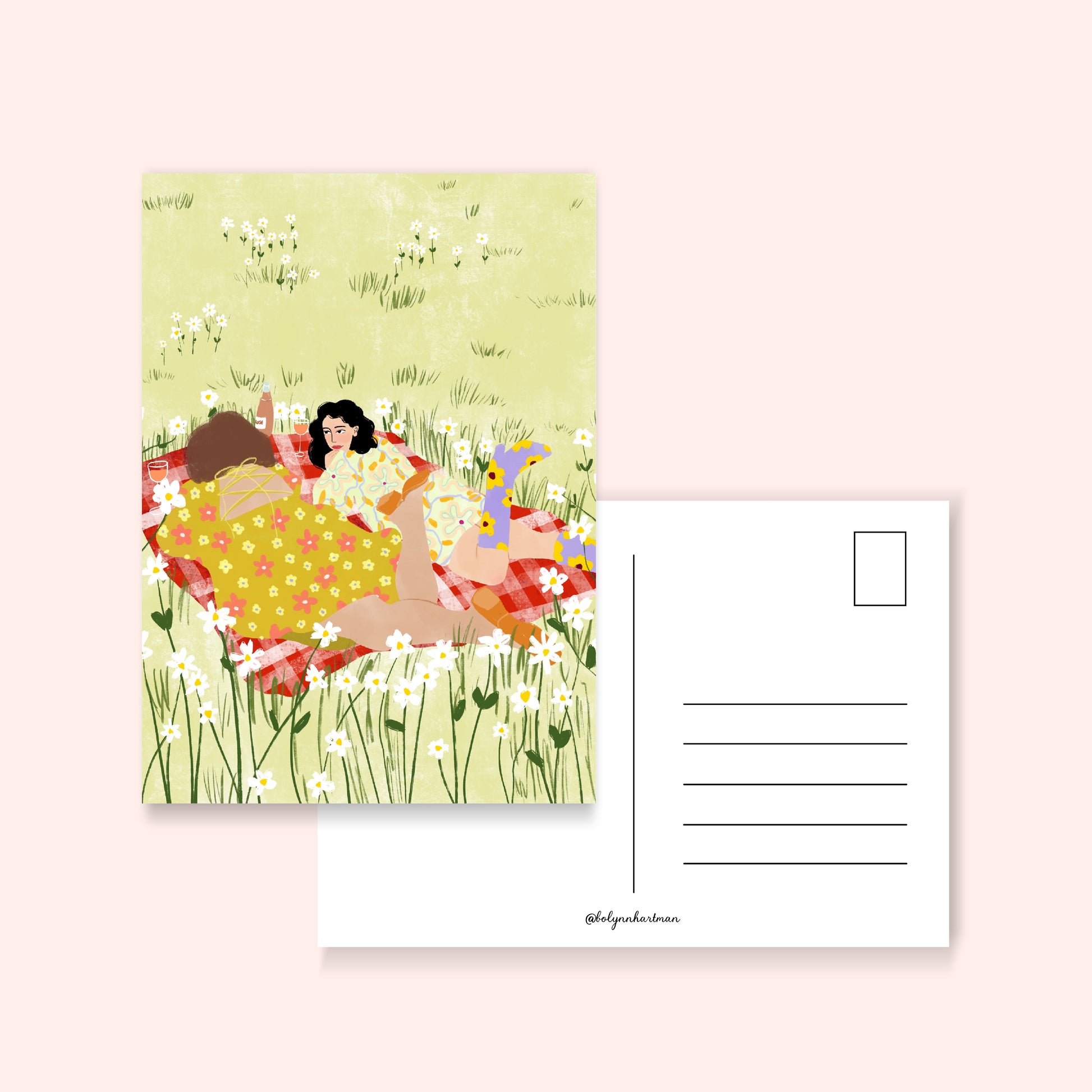 Een vrolijke, handgetekende ansichtkaart die perfect is om te versturen, in te lijsten of cadeau te geven.